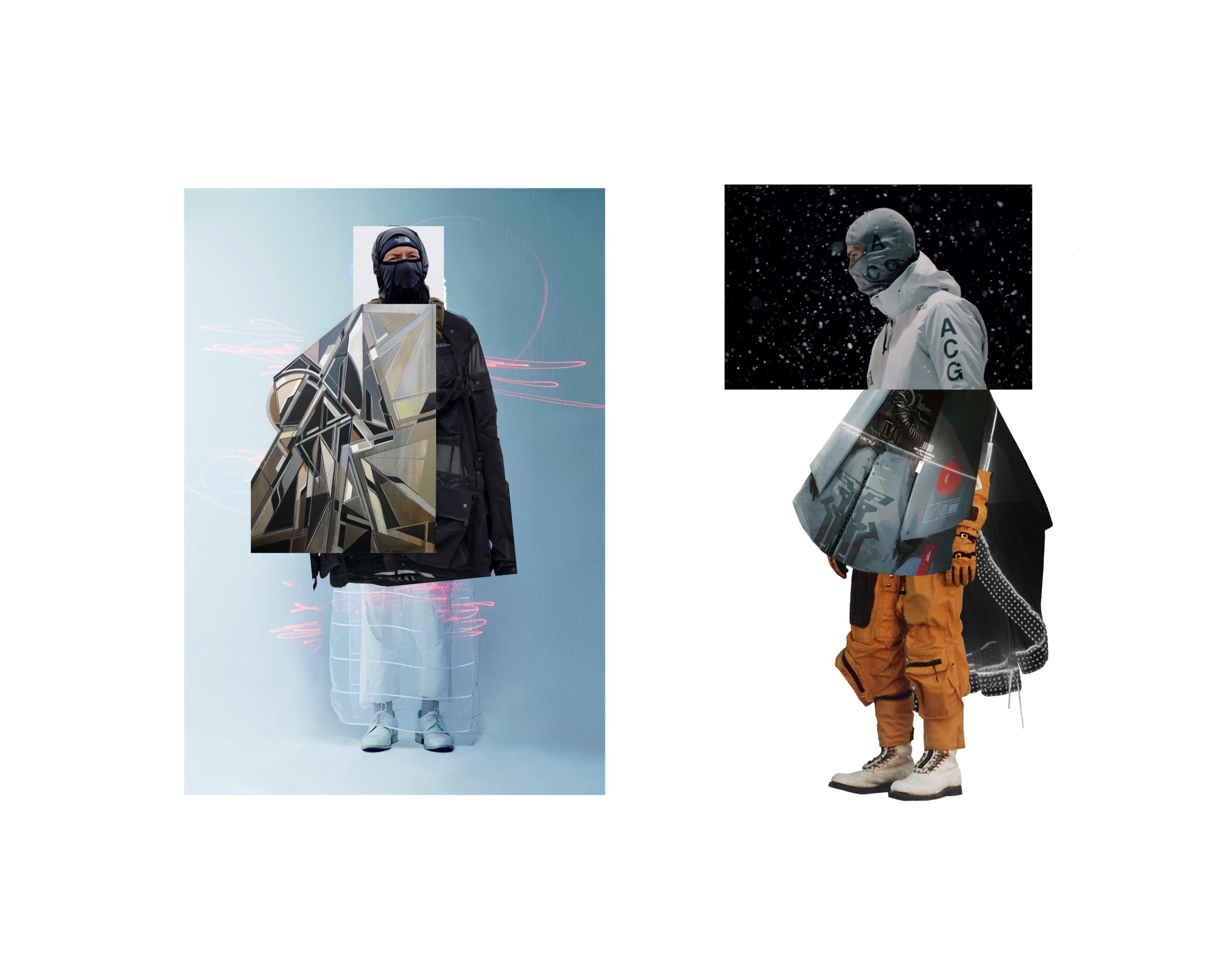 CODED is a collection that experiments with abstract pattern making and varied material selection and layering to bring together the worlds of fashion and technology to improve the essential functions of clothing. This project was inspired in part by climate change impacting the south’s hurricane season. As extreme weather patterns become more common so too will extreme weather clothing and a necessity for adaptability.
